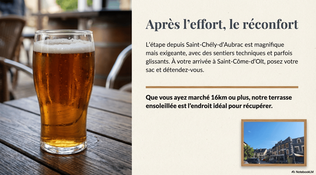 Bienvenue à la Brasserie du Théron, votre escale incontournable située au cœur de Saint-Côme-d'Olt, joyau classé parmi les "Plus Beaux Villages de France". Notre établissement n'est pas seulement un restaurant, c'est un lieu de vie où se croisent les habitants de la vallée du Lot, les pèlerins en marche vers Saint-Jacques-de-Compostelle et les voyageurs en quête d'authenticité.