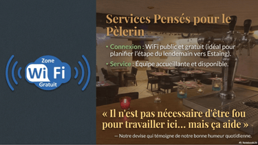 Dès votre arrivée, vous serez charmés par l'architecture typique de notre bâtisse, qui témoigne de l'histoire riche de notre région. Que vous choisissiez de vous installer sur notre vaste terrasse ombragée pour profiter de l'animation du village ou dans notre salle intérieure aux poutres apparentes pour une ambiance plus feutrée, nous vous promettons un moment de convivialité unique.
