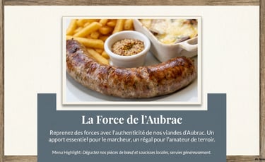 Notre philosophie est simple : vous offrir une cuisine sincère, généreuse et faite maison. Nous sommes fiers de notre terroir aveyronnais et nous le mettons à l'honneur dans chaque assiette. De la pause déjeuner rapide au dîner qui s'éternise entre amis, la Brasserie du Théron s'adapte à votre rythme. Profitez de notre connexion WiFi gratuite pour partager vos moments avec vos proches ou planifier la suite de votre périple en Aveyron.